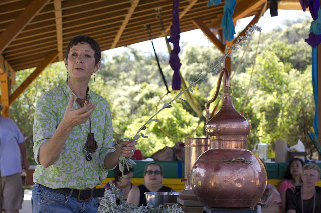 The next day the Hydrosol Distillation began at 3pm up on the warm, sunny plateau of Topanga. It was an absolutely gorgeous day which started off with taking Cathy and Florian over to visit the perfumery, lunch at Blue Table, a stop at the house to cut the white sage and then hauling all the gear up the mountain and setting up.
